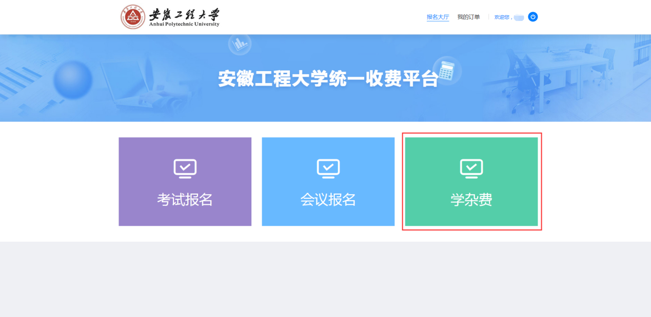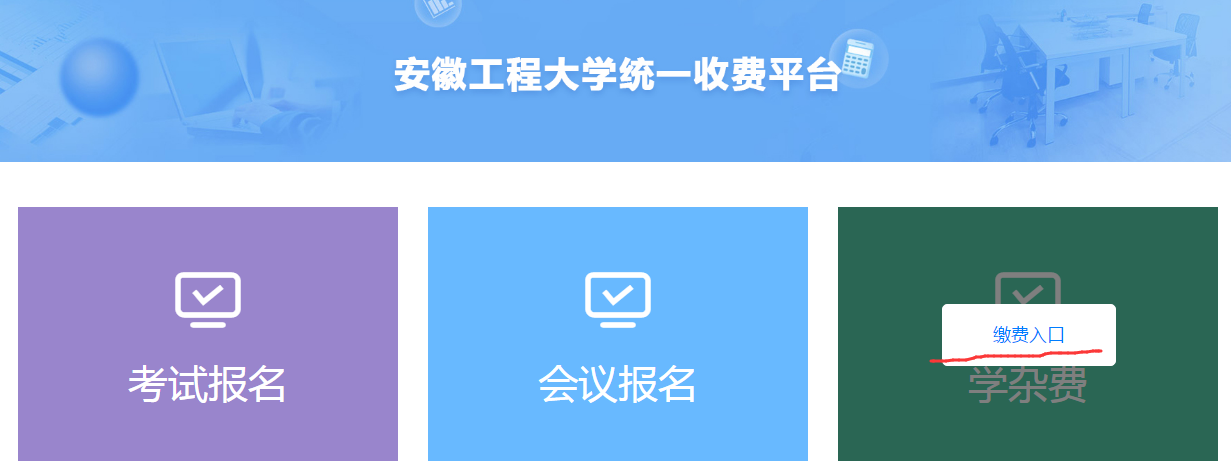 将鼠标放到图标“学杂费”上,出现“缴费入口”按钮:如下图
