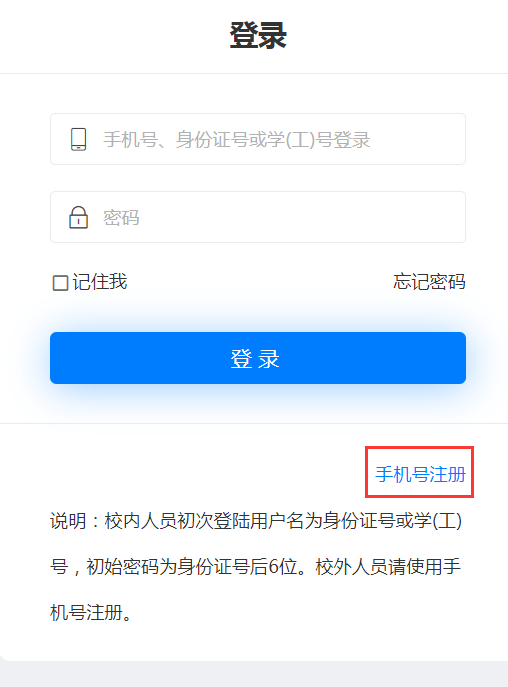 注意:(1初次登陆使用手机号注册,填写本人手机号,身份证号,姓名等信息完成注册。注册完成后即可登录系统进行缴费。
