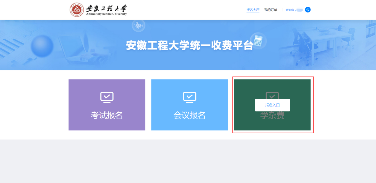 (1)完成注册后,选择“学杂费”缴费: