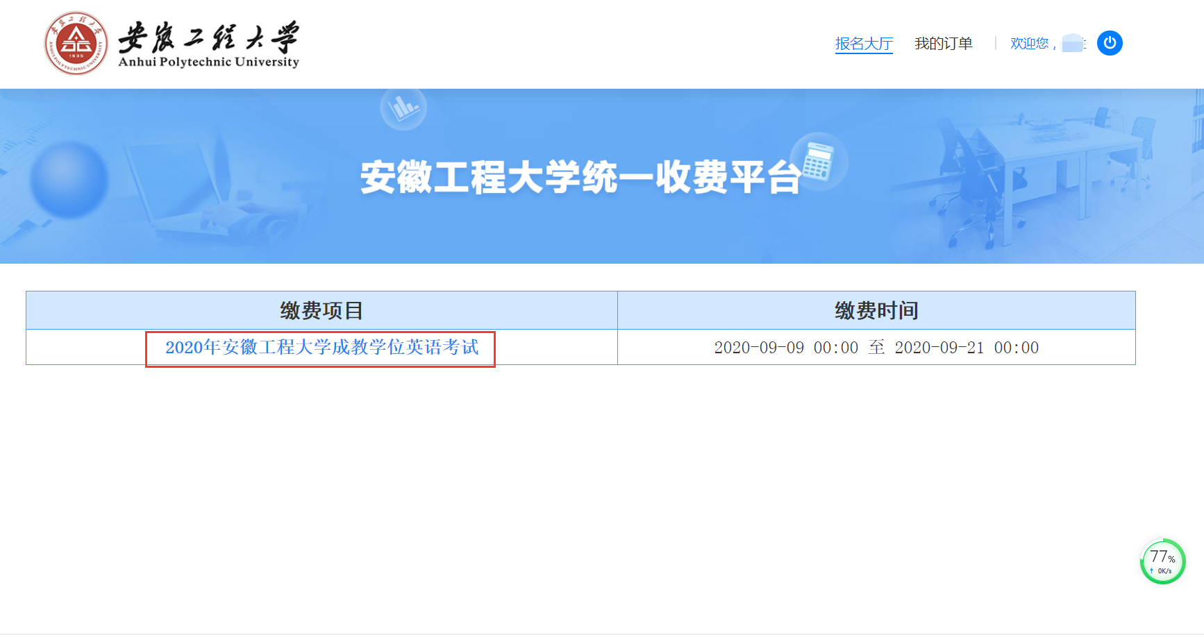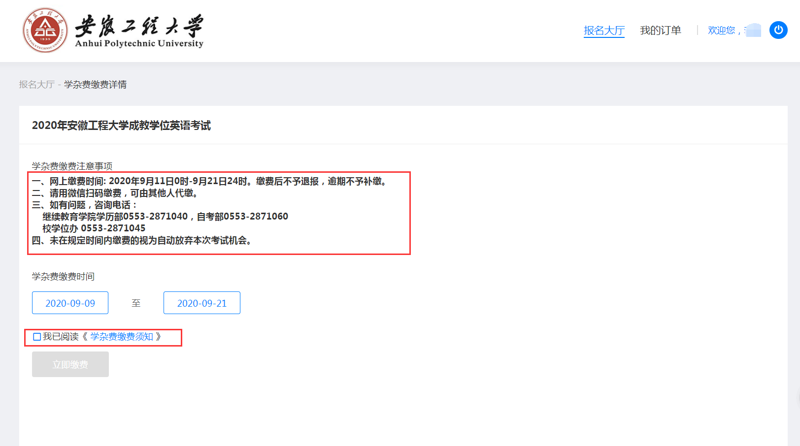 1.缴费时间:2020年9月11日-17日