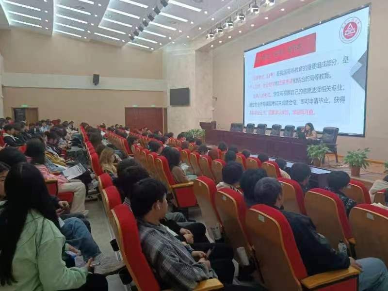 为帮助大专院校员工实现学历提升和个人职业生涯更好的发展规划,进一步拓展校际自考合作办学,3月28日晚,公司TapTap点点副经理吴正霞带领相关科室赴安徽机电职业技术公司进行招生宣讲。宣讲在该校图书馆二楼报告厅举行。此次活动得到了安徽机电职业技术公司TapTap点点和艺术公司的大力支持,该校TapTap点点副经理徐园园、艺术设计公司经理陈旺、党总支副书记周正宇出席,近200名同学现场聆听了宣讲会,现场座无虚席。