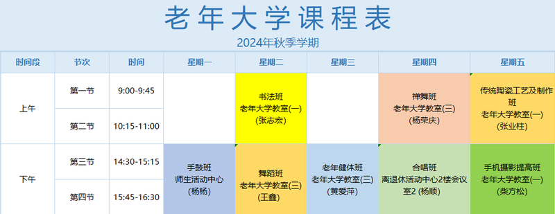 各位学员朋友们,老年大学2024秋季班开始啦,欢迎各位老学员继续报名,也欢迎新的学员加入老年大学,让我们一起开启新的学习旅程吧!